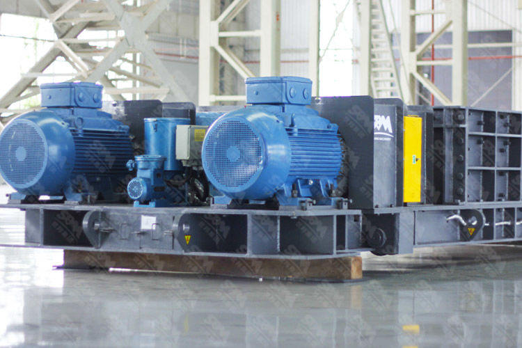 该生产线配置信息:原材料为金矿尾矿;进料粒度为300mm;成品粒度为40-50mm;产量为450吨/时;设备为3台2SBMC75300筛分式双齿辊破碎机......