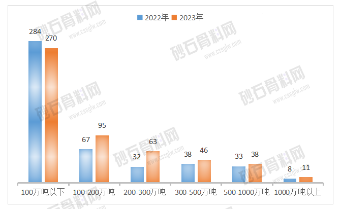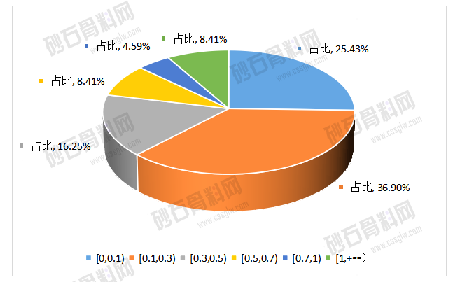 砂石行业经过多年的发展,整体行业秩序已经初步形成,但微小型砂石矿山仍占较大比例。通过对2023年上半年新成交523宗采矿权矿山面积分析发现,面积小于0.3平方公里的矿山数量占比超六成,大于1平方公里的仅占比不到一成。总的来说,矿山规模化程度仍有待提升。